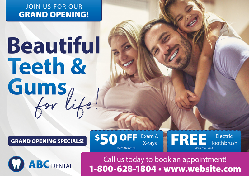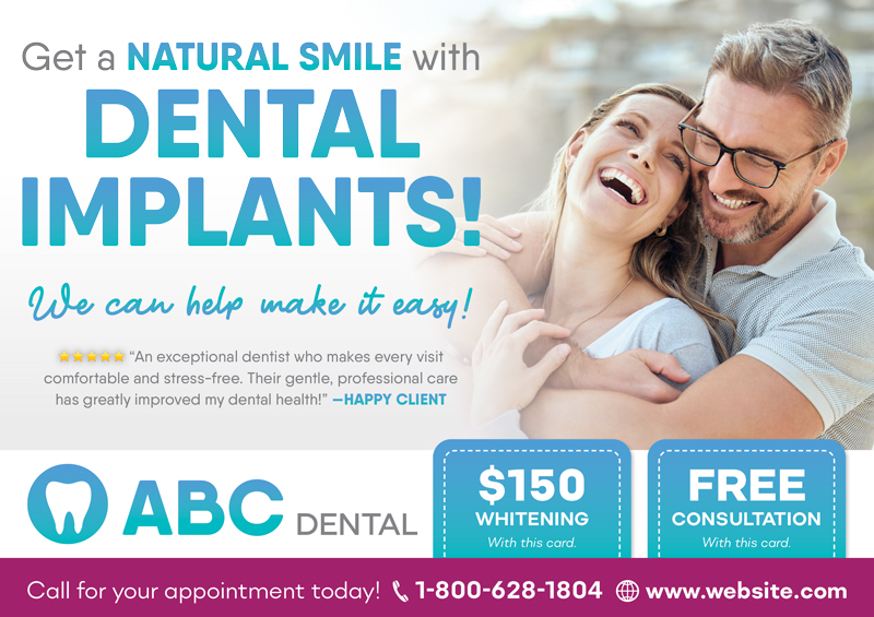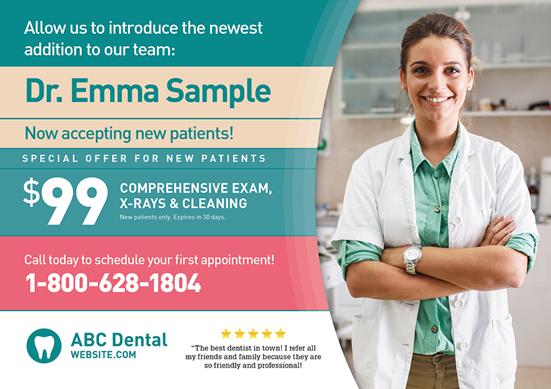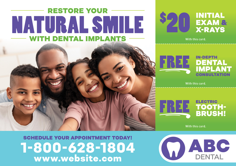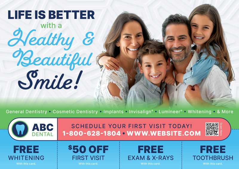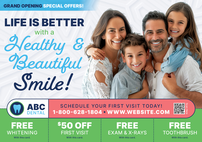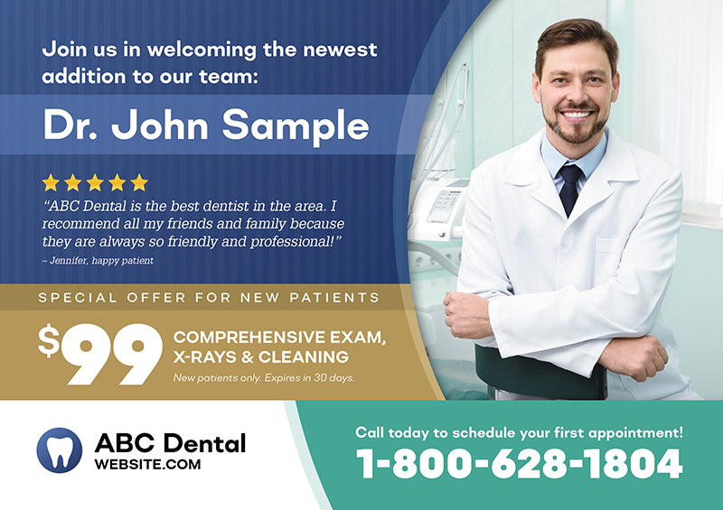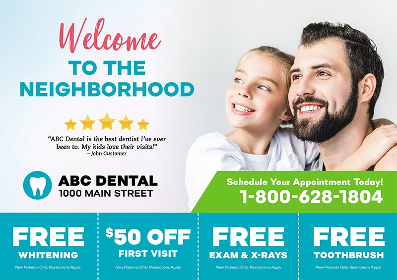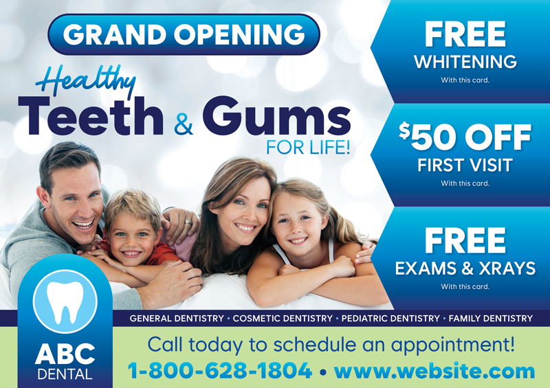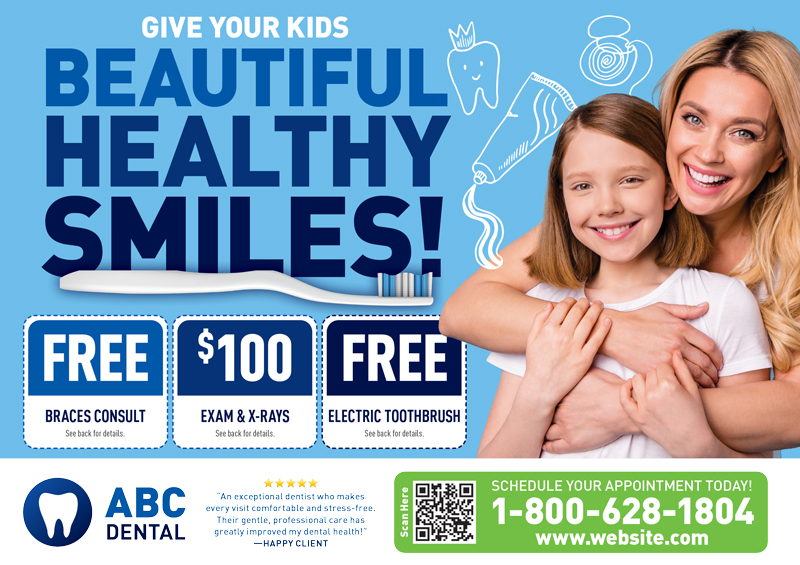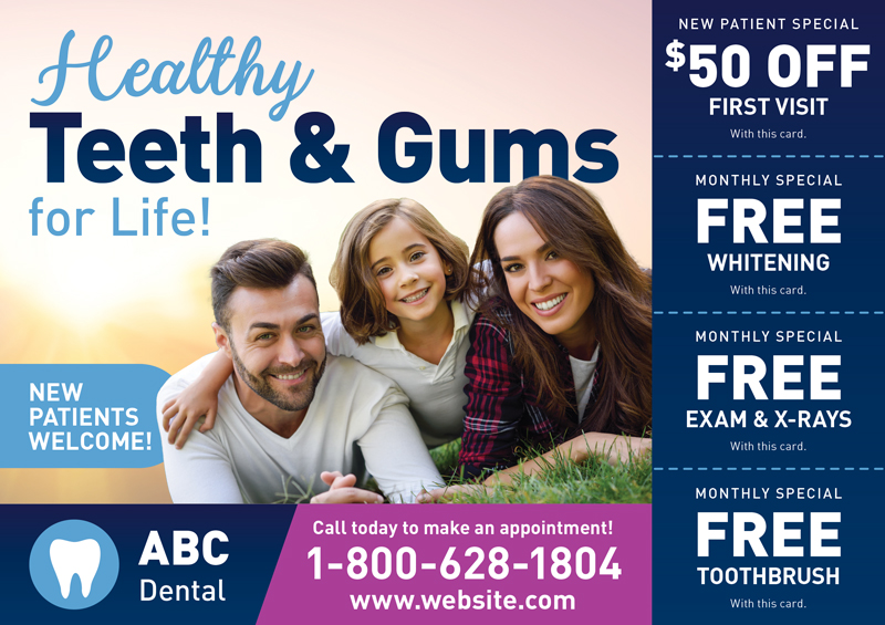 The dentist postcards above are already proven to create leads for dentists, and they’ve been used by our very own clients! You can browse our selection for dental office marketing ideas and customize one of the templates with your contact information and logo. Or if you prefer, we can design brand new dental marketing postcards from scratch.