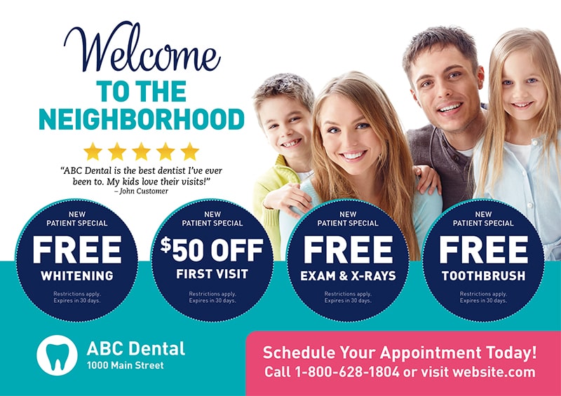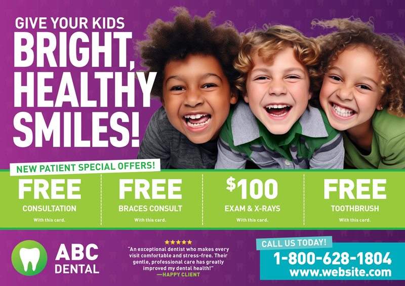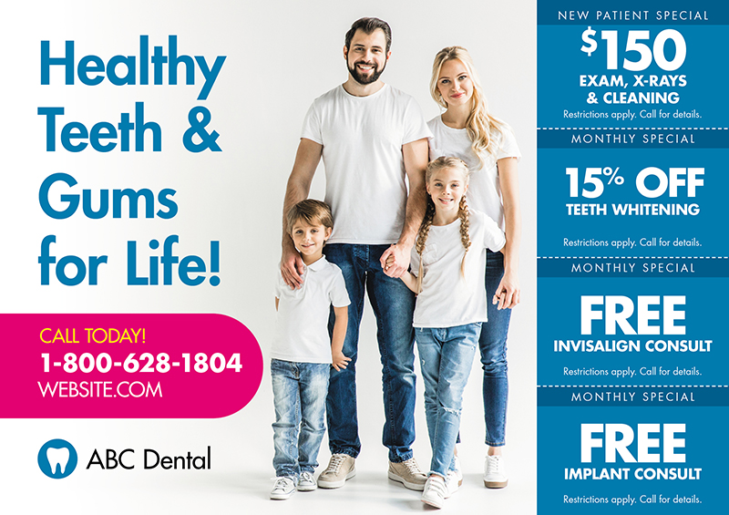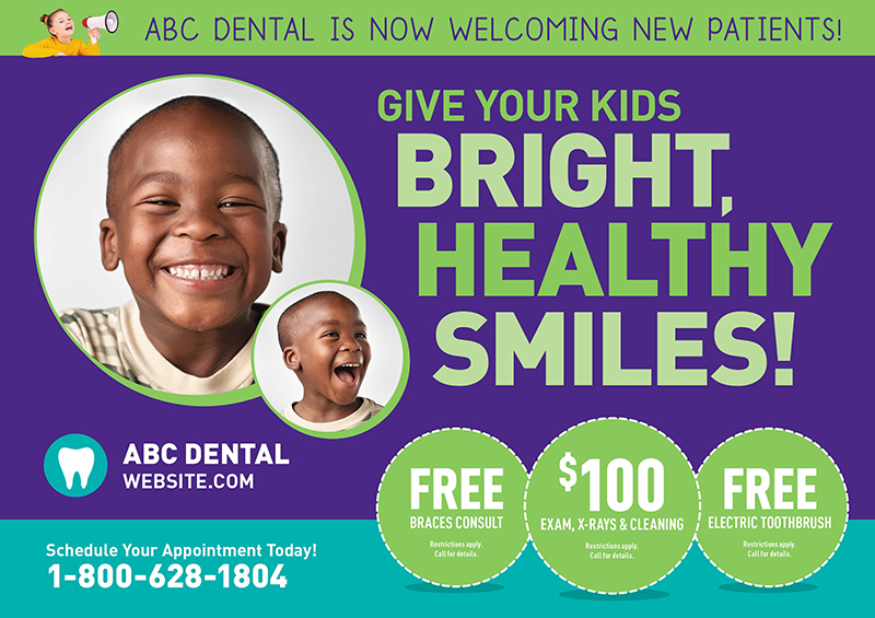 You don’t have to reinvent the wheel with your dental office marketing — in fact, we strongly advise against it! Instead, work with a dental marketing agency like us to get your advertising in line. We have loads of experience marketing a dental practice and have created cosmetic dentistry postcards and pediatric dentistry postcards to increase leads and revenue.
