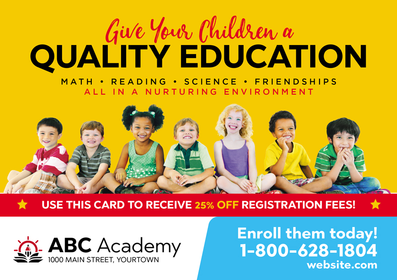 School postcards can be used as a part of any marketing strategy for private schools. They are cost-efficient and offer a great return on investment. So, don’t delay – start sending postcards to promote your school by browsing our template library or talking to us about creating a one-of-a-kind design.
