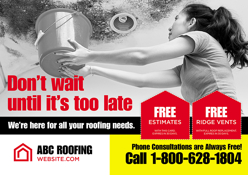 On this page you’ll find roofing postcards and roofing flyers that our clients have already successfully used to attract new leads for their roofing companies. We can customize any of these templates for your business, or create a brand-new postcard designed specifically to generate leads for roofers.