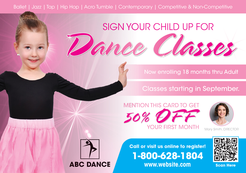 Call our experts today at 1-800-628-1804 to get started on your dance school postcards or to talk about other marketing strategies for dance studios! Even if you don’t use our services, the consultation is FREE!